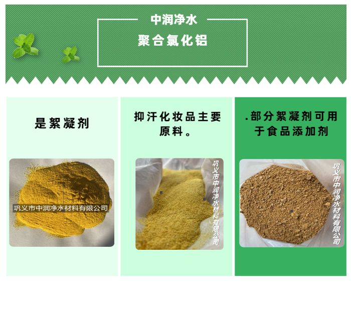 2.有腐蝕性。加熱至110℃以上時(shí)分解,放出氣體,分解為氧化鋁;與酸反應發(fā)生解聚作用, 使聚合度和堿度降低,變?yōu)檎X鹽。與堿作用可使聚合度和堿度提高,可形成氫氧化鋁沉淀或鋁酸鹽;與硫酸鋁或其他多價(jià)酸鹽混合時(shí)易生成沉淀,可降低或完全失去混凝性能。